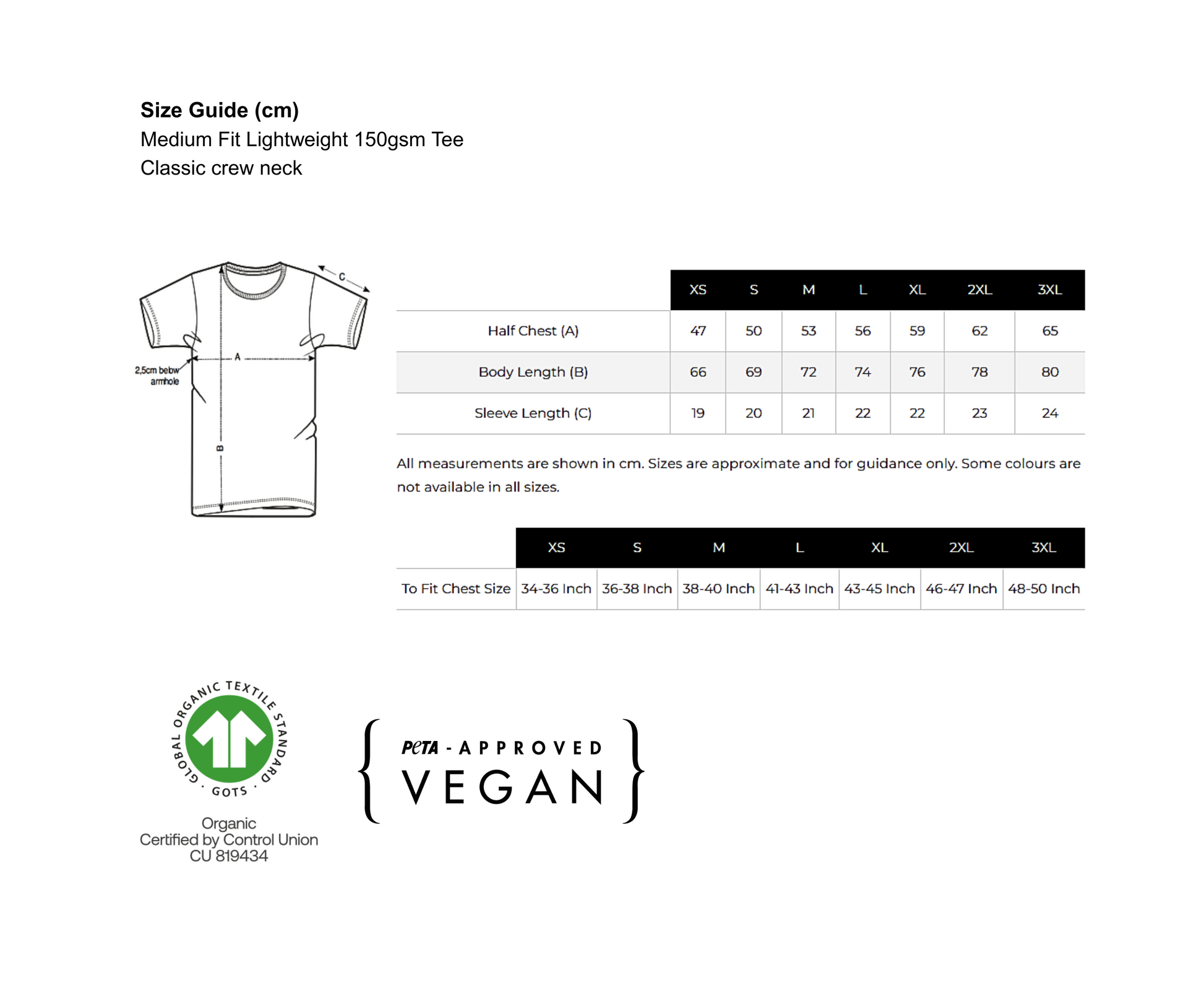 This garment is produced using 100% GOTS-certified organic cotton and printed using eco-friendly, water-based inks. We partner with ethical manufacturers who prioritise fair labor practices and environmentally responsible production methods.